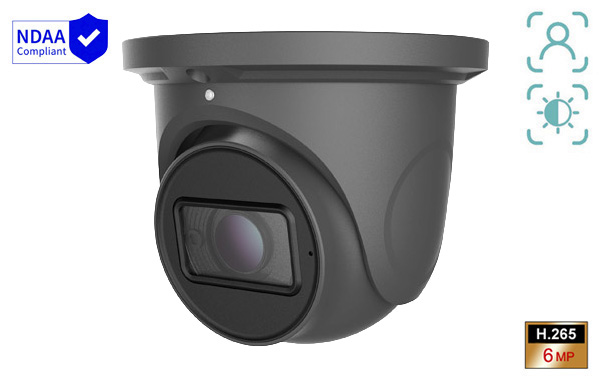 6M Pixel, POE, Charcoal Colour, 2.8mm Fixed Lens, Smart Supplement Light, Built-in MIC, Built-in Micro SD Card Slot, Vandalproof, IP 67, ONVIF, 3-Axis, Starlight, Full Colour Night Vision, People and Vehicle Detection, HWDR, Intelligent Analytics