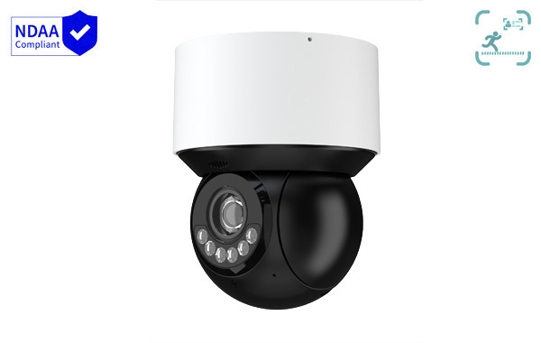 4MP IP mini dome, 1/2.7” progressive scan CMOS, 4X optical zoom, 2.8-12mm, IR + White LED, Built-in MIC, Built-in Speaker, People and Vehicle Detection, Intelligent Analytics, Smart tracking